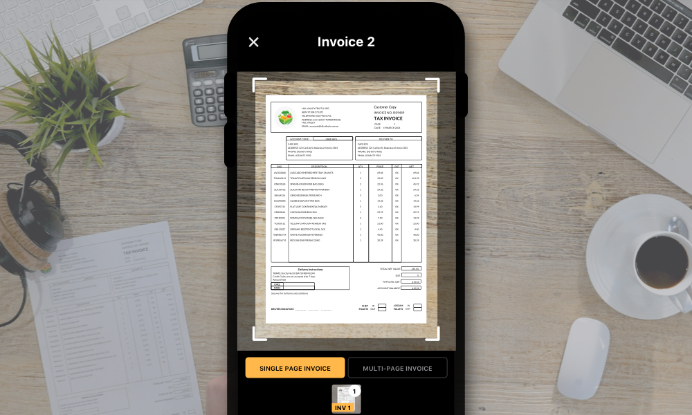 Okay, with the camera open I am ready to jump to light speed and take some pictures. There’s a toggle between “Single Page Invoice” and “Multi-page Invoice” camera mode. As you know, some invoices can have multiple pages and for those I would switch over to the “Multi-page Invoice” mode, but in my case the invoice has only 1 page so I am happy to stick to the default single page setting.