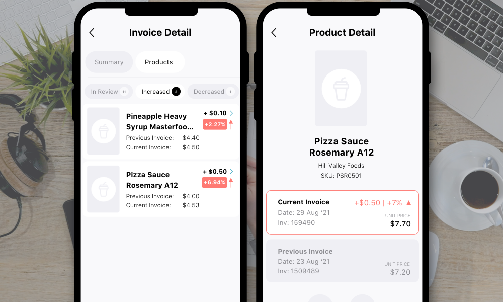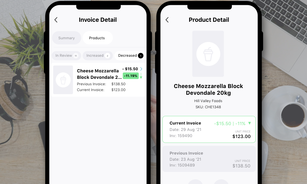 I can tap on the invoice card to visit the Invoice Detail screen and from there explore all my products and their prices. Conveniently, the products are automatically segmented into groups – “All“, “Increased“, “Decreased“, “New” and “Unchanged“.